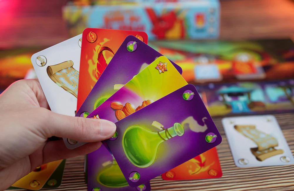 Unfortunately, all the other villagers have the same idea! Bribe with the right treasure at the right time to keep the dragon’s attention while buying treasures at the Black Market and cursing the other villagers’ treasures. When there’s no more treasure left, the dragon will burn all the villages except for one. Will it be yours?